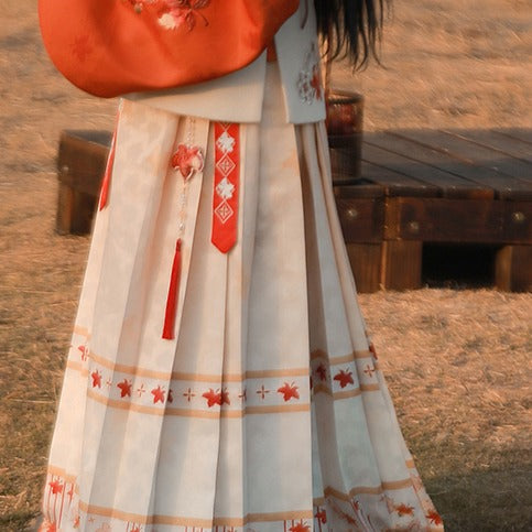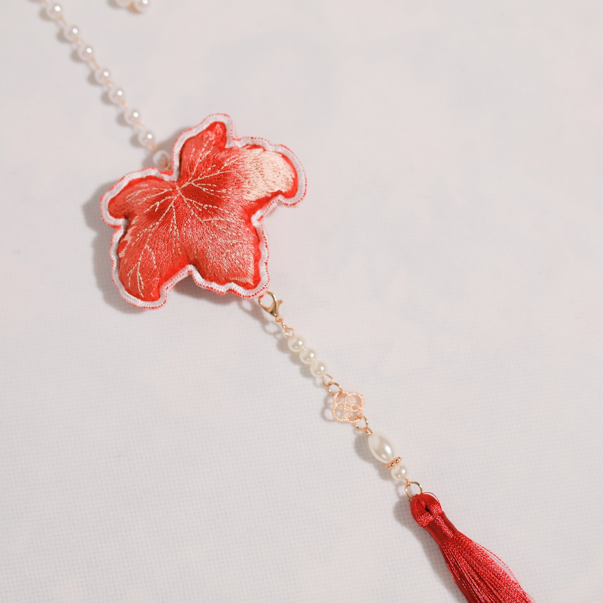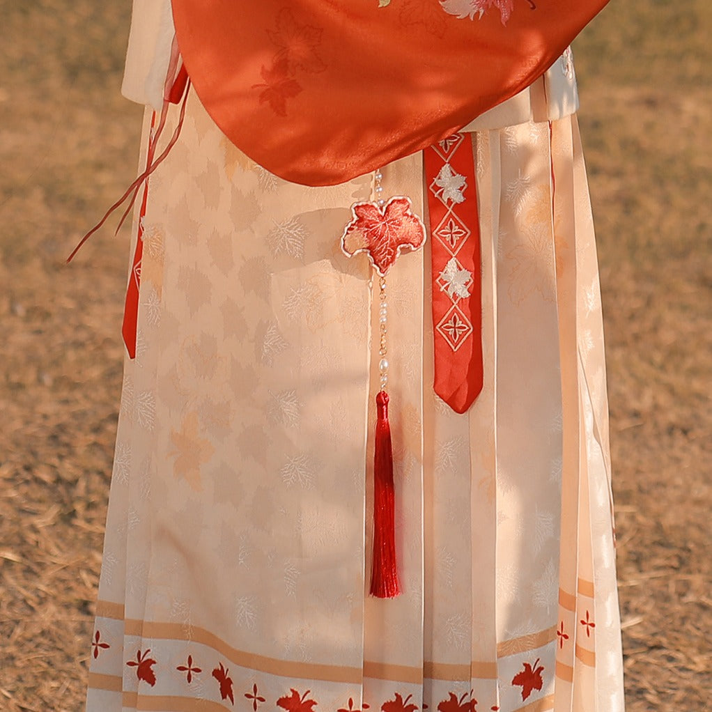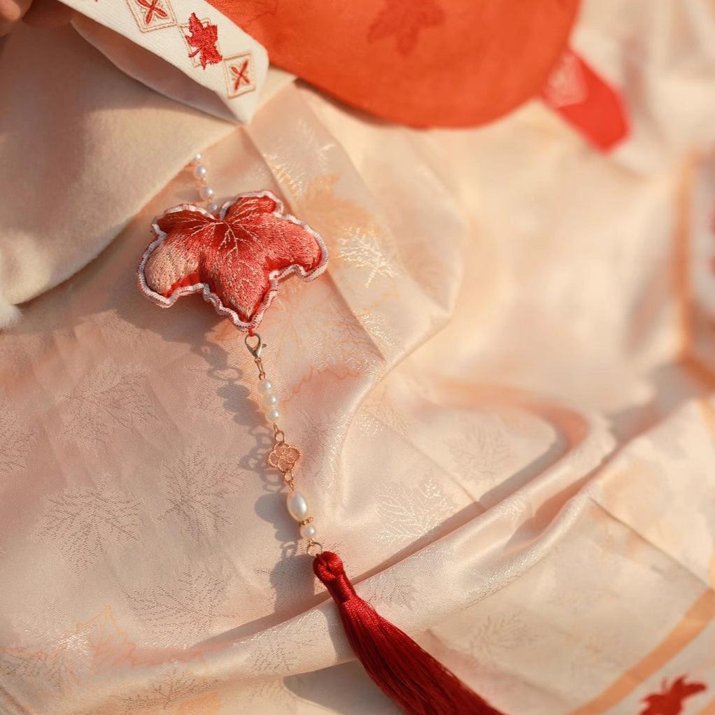 13 Xiao Lu Shui Ancient Chinese Style Hanfu Accessories Red Maple Leaf Embroidery Pouch with Pearl Tassel Blessing Pendant In Stock
