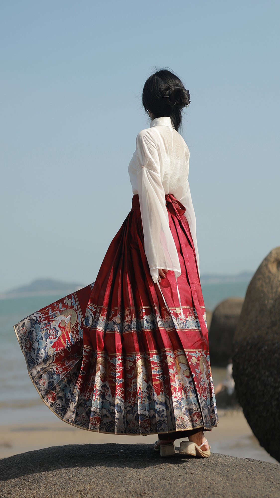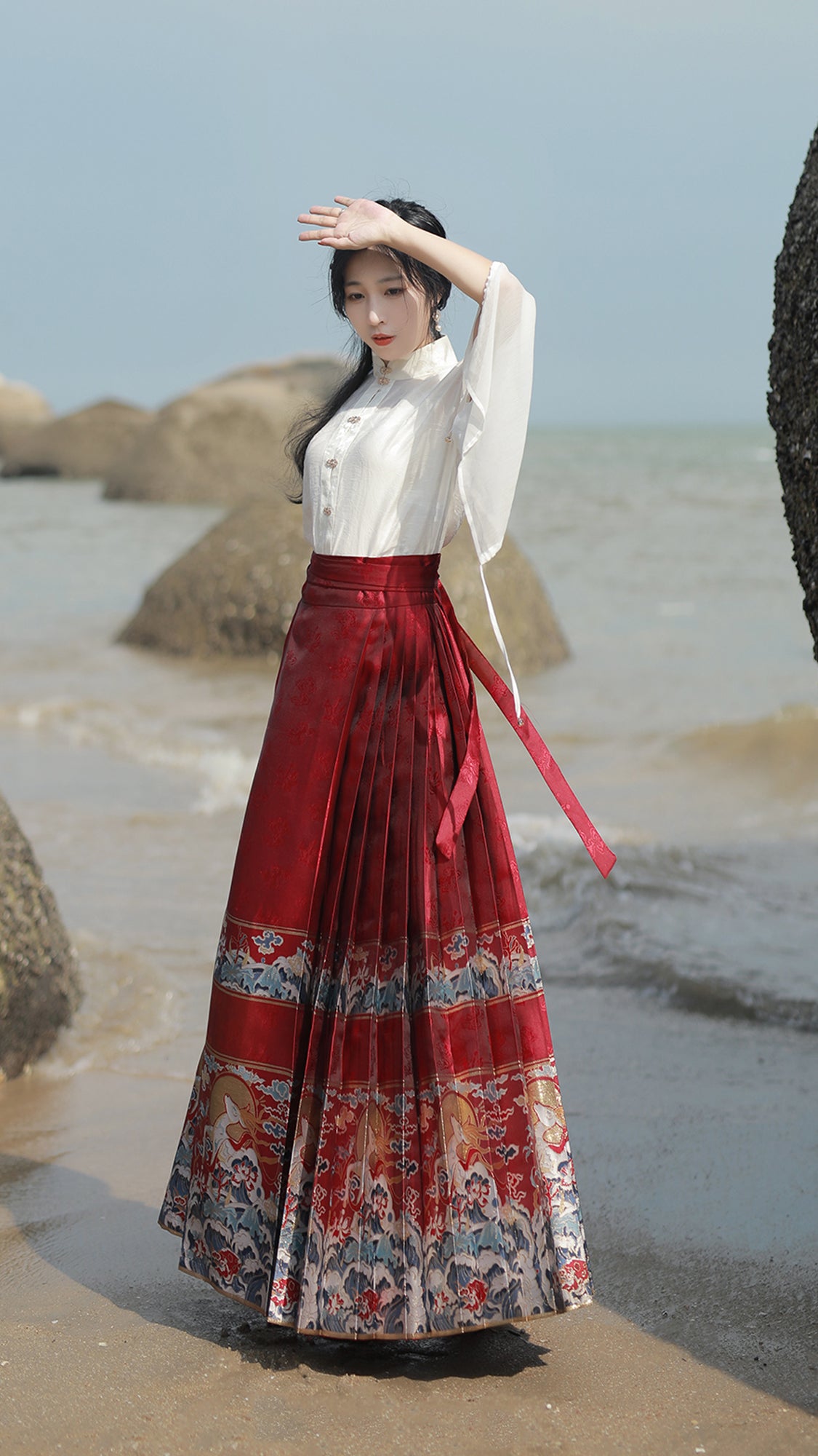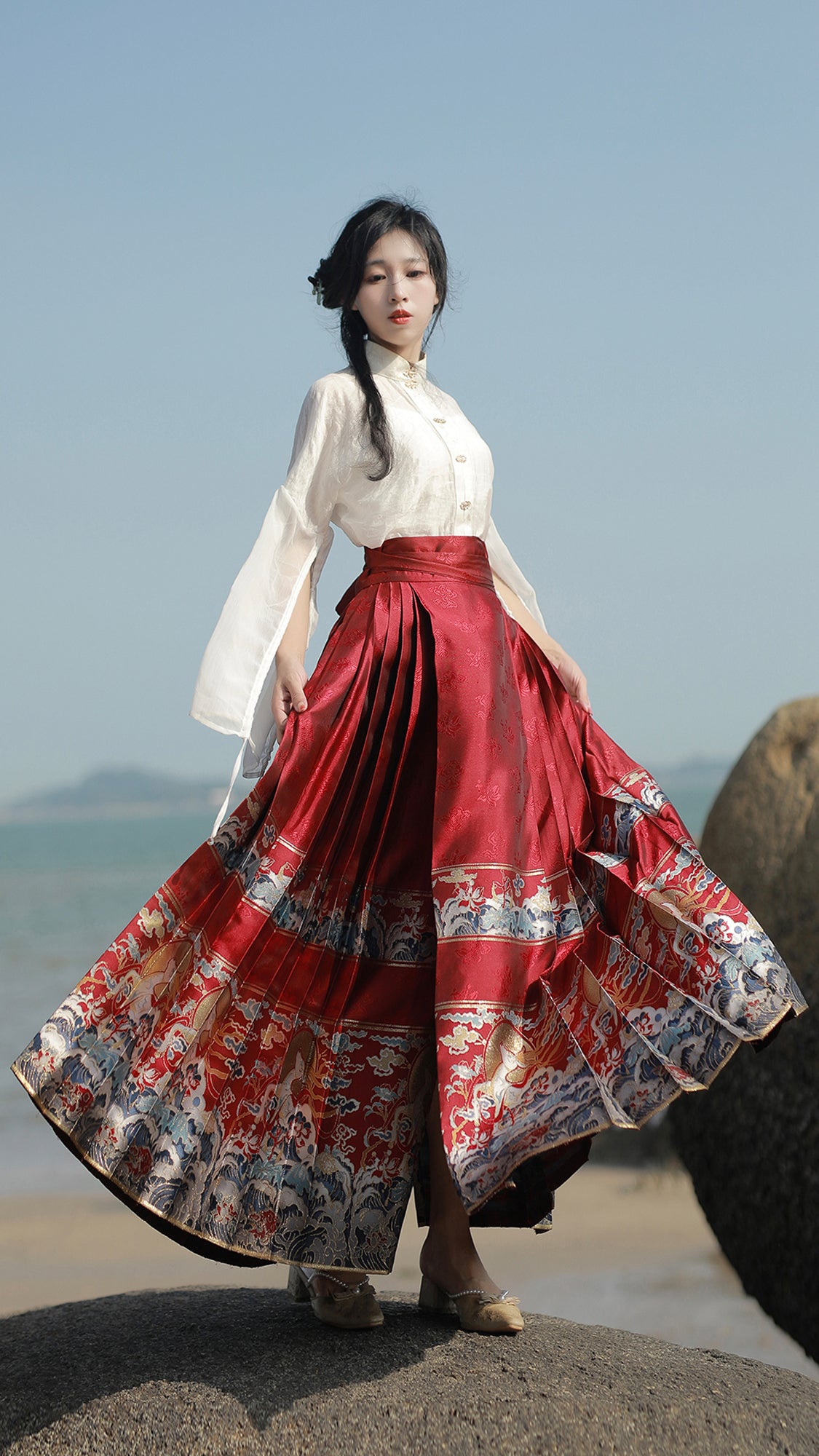【鹿灵撼海】国风汉服明制红织金中长马面裙